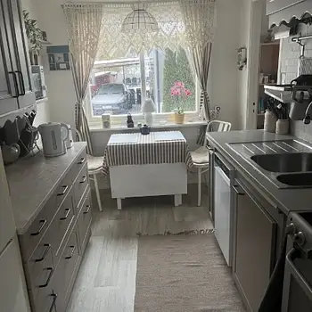 Mycket natur runt omkring även om läget nära vägen kan upplevas som störande beroende på var du bor. Nära till Hökarängsbadet ungefär 5 min promenad