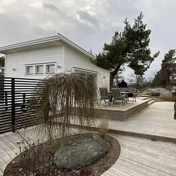 Finns både radhus, villor och lägenheter, en bra matbutik, fina promenadvägar, nära till buss, fina bad (strand & klippor), dagis, ca 10 minuters promenad till centrum.