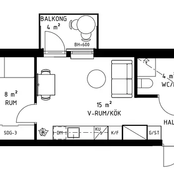 2 Rum - Lägenhet - 32 m²18230, Danderyd