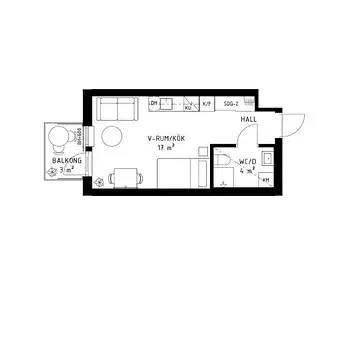 1 Rum - Lägenhet - 12 m²17074, Solna