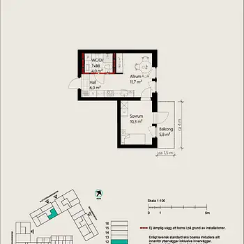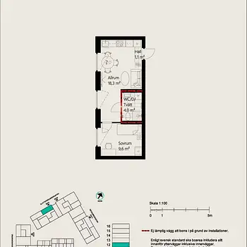 1 Rum - Lägenhet - 38 m²61137, Nyköping