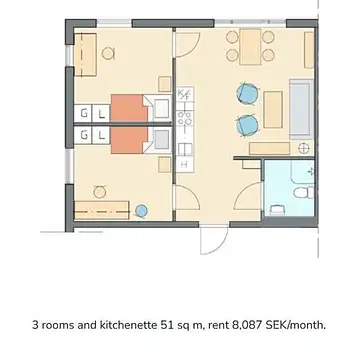 2 Rum - Lägenhet - 40 m²85426, Sundsvall