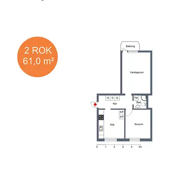 2 Rum - Lägenhet - 61 m²57339, Tranås