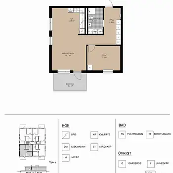 1 Rum - Lägenhet - 34 m²72337, Västerås