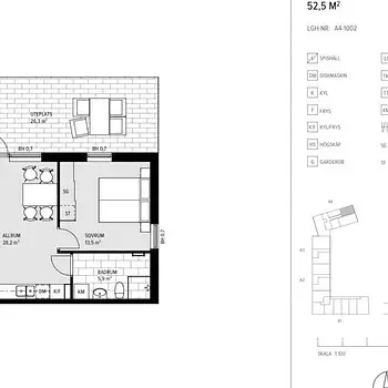 2 Rum - Lägenhet - 52 m²22220, Lund