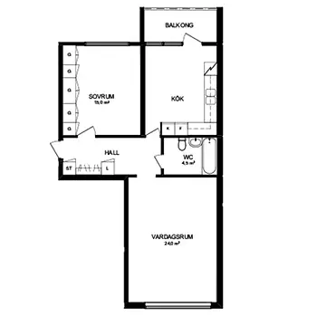 2 Rum - Lägenhet - 45 m²72474, Västerås