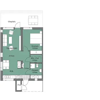 2 Rum - Lägenhet - 59 m²28695, Eket