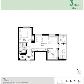 3 Rum - Lägenhet - 53 m²13656, Vega