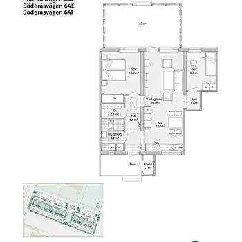 2 Rum - Lägenhet - 73 m²12648, Hägersten