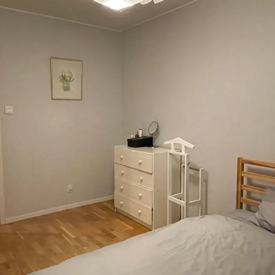 Mycket natur runt omkring även om läget nära vägen kan upplevas som störande beroende på var du bor. Nära till Hökarängsbadet ungefär 5 min promenad