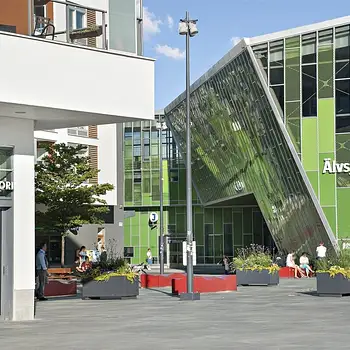Good communication with the center of Stockholm. A lot of activities and shopping such as restaurants. You also find large convention centers here.