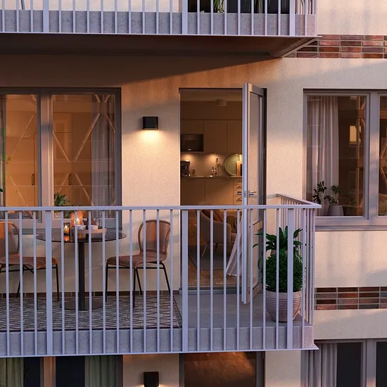 Mycket natur runt omkring även om läget nära vägen kan upplevas som störande beroende på var du bor. Nära till Hökarängsbadet ungefär 5 min promenad