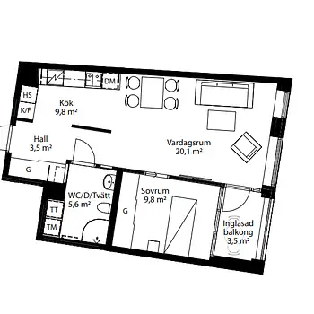 2 Rum - Lägenhet - 56 m²37112, Karlskrona