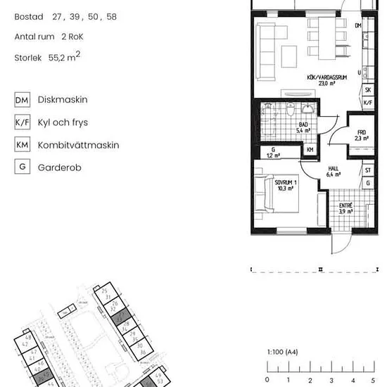 2 Rum - Lägenhet - 55 m²59559, Mantorp