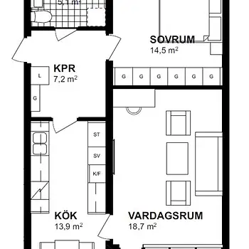 2 Rum - Lägenhet - 64 m²59011, Boxholm