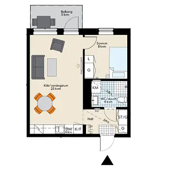 1 Rum - Lägenhet - 34 m²72462, Västerås