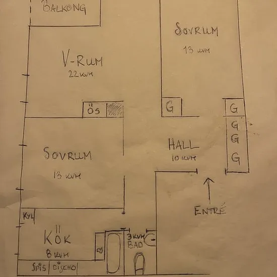 3 Rum - Lägenhet - 77 m²11827, Stockholm