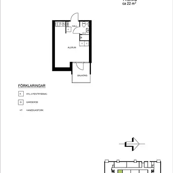 1 Rum - Lägenhet - 22 m²45160, Uddevalla