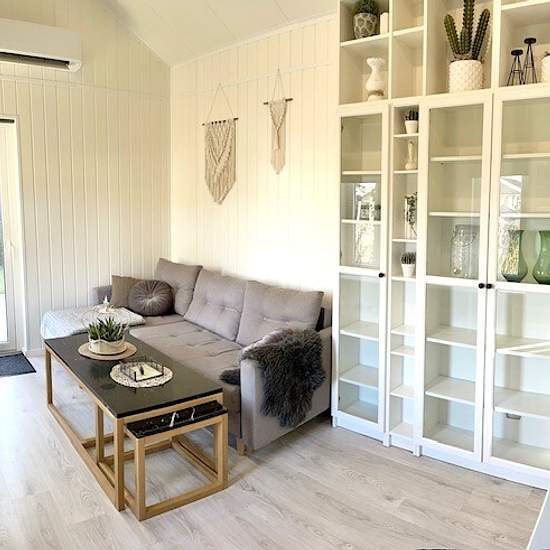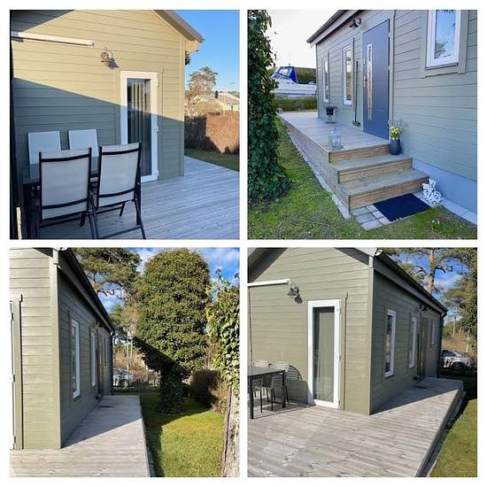 Attefallsstuga i Åhus 25 m2 + mysigt loft med dubbelsäng och förvaring. Stugan ligger i ytterkanten av tomten, avskärmat och med egen parkering.. Området är gammalt stugområde, med nyare villor här och var. * Loftet har 2*90 cm sängar. * Bäddsoffa för 2 vuxna, förvaring i divanen * Många förvaringsmöjligheter * Trinettkök med fällbart barbord, kombiugn, spis, fullstorlek på kyl och frys, köksutrustning (om så önskas) * WC med dusch samt kroppsspegel * Utemöbler och grill * Dag- och kvällssol på eget trädäck * Gräset sköter roboten. * Djur-...