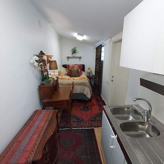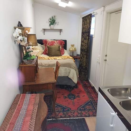 Free to rent from october 2025 until further notice (tillsvidare) Proper contract always written with one month deposition. Super Cosy Comfortable small guest house on villa property. Calm area and close to fantastic nature and only 12 minutes to subwaysystem and 20 min to Stockholm C. Kingsizebed, separett waterfree toilet, trinettkitchen, free access to laundryfacilities and bathroom in the mainhouse. You collect freshwater in glasjars from mainhouse. Newbuilt centrum with post office, pharmacy, library, healtcare center, bakery, restau...