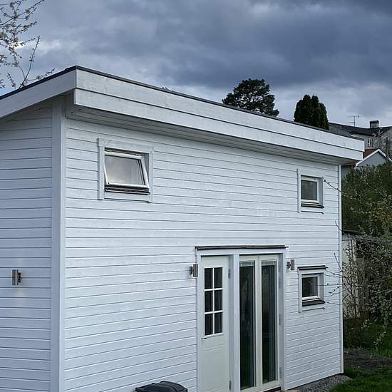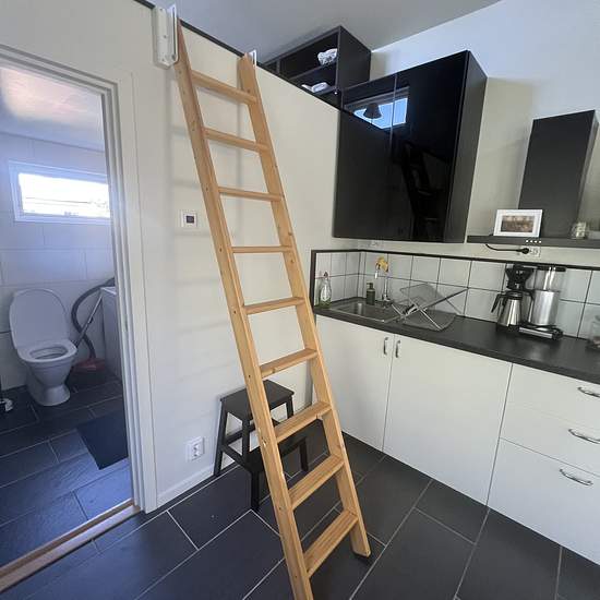 Attefallshus på 25 kvm med två sovloft varav det ena lite nersänkt så takhöjden är lite högre , dock ej ståhöjd men det går bra att sitta i sängen utan att slå i huvudet. Sovloften tillför ytterligare ca 5 kvm extra /st så totalt blir boendeytan 25+5+5 dvs 35 kvm (jag har noterat två sovrum då man skulle kunna sätta upp gardiner och göra sovloften till "egna sovrum" ) Riktig fast trappa till det stora sovloftet där det finns en 120 cm säng. Bäddsoffa på nedre plan för ev övernattningsgäster. Utdragbar trappa till sovloft på andra sidan med ...