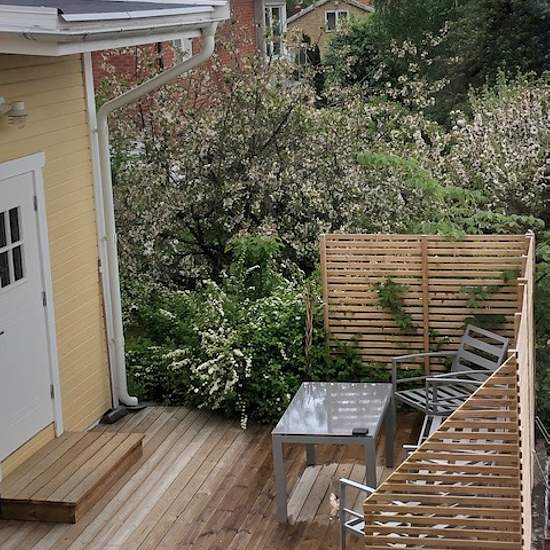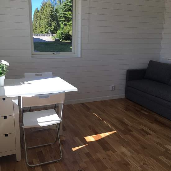 Attefallshus med sovloft och stor solig uteplats uthyres i lugnt villaområde i Bromma Kyrka. Här får du ett ljust vardagsrum, fullt utrustat kök, helkaklat badrum med tvättmaskin, mysigt sovloft och en rymlig uteplats i söderläge. Perfekt boende för dig som vill ha lugn miljö nära både natur och stad. Om bostaden • Attefallshus 25 kvm med sovloft • Vardagsrum, kök/pentry, badrum samt sovloft • Möblerat (kan även hyras omöblerat) • Stort ljusinsläpp, genomtänkt planlösning • Köksdel med spis, diskmaskin, kyl/frysfack och kombi ugn/micro • H...