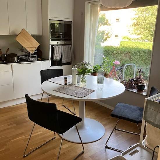 Trivsamt och lugnt radhus på två plan. På plan två finns fyra rum, två hyrs ut, ett är ett allmänt vardagsrum/gästrum. Ett extra rum står just nu tomt men inväntar hyresgäst. På plan två finns också badrum med badkar/dusch och tvättmaskin. På bottenplan finns ett fullt utrustat och rymligt kök, med kyl, frys, diskmaskin m.m. På bottenplan finns också en mindre lägenhet där det bor en kvinnlig hyresgäst. Området är lugnt, grönt och tyst, med många grönområden och äppelträd. Huset är rökfritt och alkoholfritt och passar dem som är skötsamma, m...