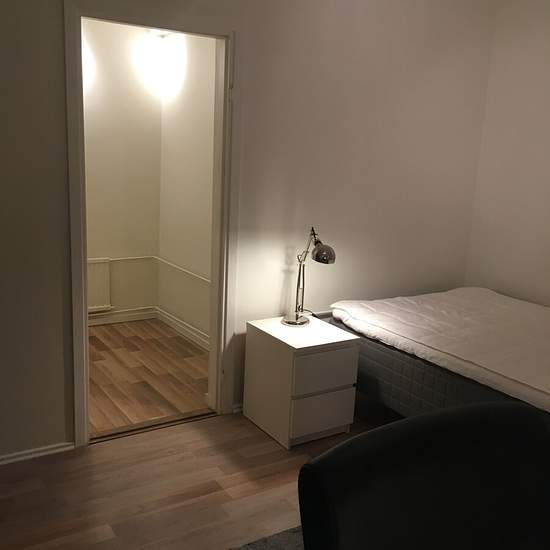 MYSIGT RUM! Det är en unik boendemiljö där ingen familj bor i villan utan enbart du och ett fåtal unga hyresgäster som man delar kök och två badrum med. Mer eget boende kan det nästan inte bli!! Rummet är ca 16 kvm. Där finns en 120 cm bred säng med nattygsbord, skrivbord med skrivbordsstol samt flera garderober. Det finns även en rymlig klädkammare. Huset ligger fint på en lagom stor tomt. Både på framsidan och baksidan av huset finns soliga uteplatser för avkoppling eller en trevlig grillkväll i goda vänners lag. Grill samt utemöbler fi...