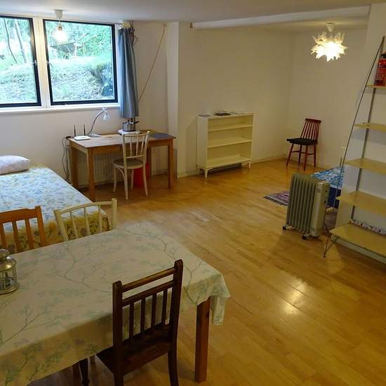 Rum/Vindsvåning (t ex Veckopendlare 1900 t 3200 kr/mån, ...Student... Övrig...) nära Mörby C T-bana i villa stor naturtomt Djursholm. Free now = Ledigt omgående t ex 1 sep. "Corona-fritt". Uthyres till en icke-rökare (non-smoker)! Ej husdjur! Möblerat. 900 m till Mörby C (T-bana 15 min T-Centralen). eller 600 m till Djh Ösby stn (8 min Östra Stn/KTH). 1 km till badsjö och natursjö/-område. Stor trädgård 70x33 m insyns-skyddande växtlighet runt om. Eget toa/duschrum (Own WC+shower). Internet/fiber, pentry, tvättstuga, bastu, pingisrum, badm...