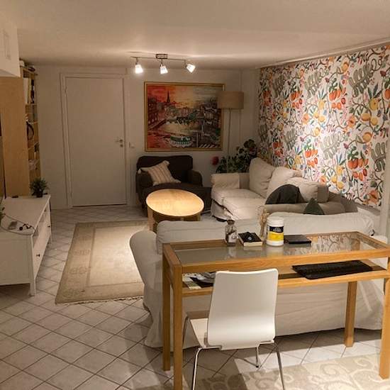 ROOM AVAILABLE FROM 1 APRIL RUM TILLGÄNGLIGT FRÅN 1 APRIL - Furnished bedroom of approx. 10 sq m in the lower floor of a villa (230 sq m) for rent in the Farsta area, the southern part of Stockholm municipality, for a minimum of six months, max 12 month. - No smoking. - There are separate living rooms, Three WC, two showers, two washing machines and two dryers in the house. So there are good opportunities for you to have a good private sphere downstairs with significantly more space than just the bedroom. TRAVEL DISTANCES (FROM DOOR TO DO...