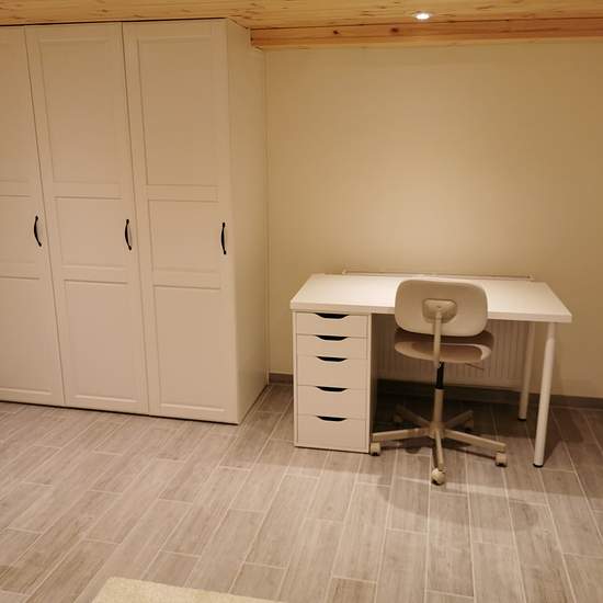 Nyrenoverat källarrum med kokvrå. Delad toalett och dusch med en annan hyresgäst. Allt ingår i hyran , även internet. Nära till centrum. Hyr bara ut till kvinnor eftersom att toan är delad med en annan kvinnlig student. Serviceavgift för hyresgäst: 207
