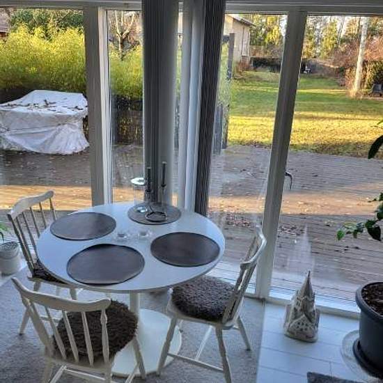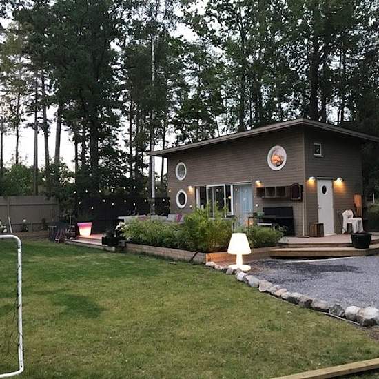Attefallshus på Koviksudde, början av Värmdö. Huset är ca 30kvm och har ett loft på ca 20 kvm. På loftet finns dubbelsäng samt förvaringsmöjligheter. Det är begränsad ståhöjd på loftet, 140 cm ungefär. Huset är välplanerad med kök som är fullt utrustat med diskmaskin, spis häll och fläkt samt kyl. Helkaklat badrum med golvvärme och dusch samt tvättmaskin. Luftvärmepump värmer upp huset. Stora fönsterpartier med skjutdörrar och utgång till stor altan på ca 30 kvm med plats för matplats och lougesoffa . Parkeringsplats ingår. 4 min promenad t...