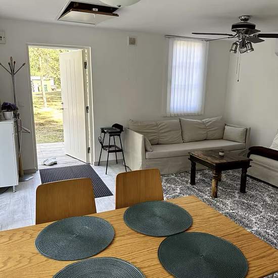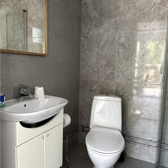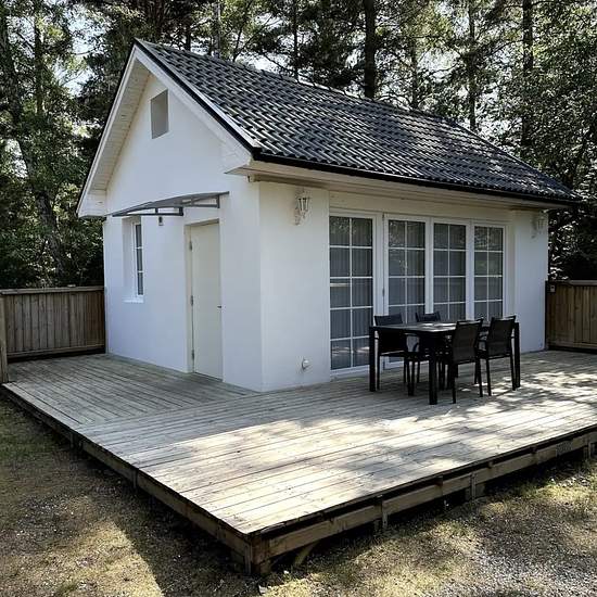 Fräsch stuga på stor, solig, tyst och insynsskyddad och skogs tomt. Stugan består av sovrum/sovlöften öppen planlösning kök/vardags rum, badrum med dusch. Två säng samt ett bäddsoffa. På toaletten finns en dusch med varmt vatten samt tvättmaskin/torktumlare. Köksvrå med följande utrusning: Kyl/Frys, Mikrovågsugn, Spis, Kaffeapparat, Rostbröd, Vattenkokare, etc. Internet finns. Matbordet med 4 stolar. Parkera gärna på tomten. Röker är inte tillåten i huset. Djurfri. Serviceavgift för hyresgäst: 470