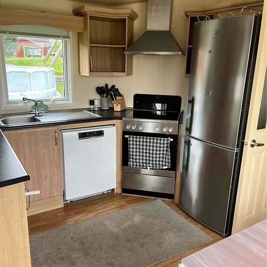 Villavagnen ligger ute för försäljning men jag kan även tänka mig att hyra ut den. Fint kök utrustat med spis, ugn, kyl och frys, mikrovågsugn och diskmaskin. Två sovrum och ett rymligt vardagsrum, badrum samt litet rum med tvättmaskin 2in1, både tvättmaskin och torktumlare i samma maskin. Kontakta oss för mer information om vad som ingår osv