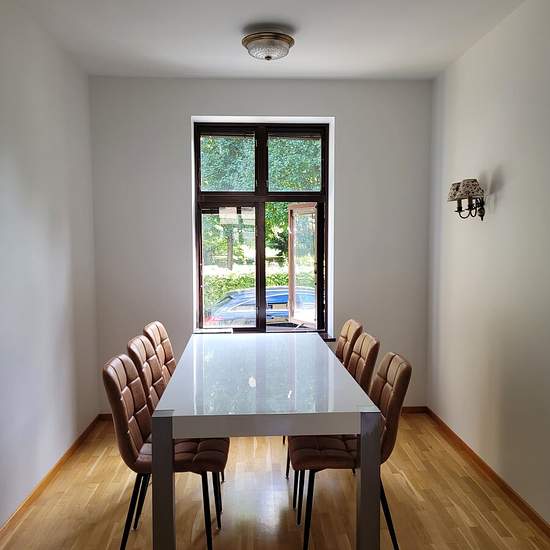 Huset har tre våningar samt en källare och innehåller ett fullt utrustat kök, tvättstuga, bastu, trädgård samt tre toaletter med dusch. För närvarande är två rum uthyrda—ett till en student från Lunds universitet och det andra till en IT-kille. Nu planerar jag att hyra ut det tredje rummet. Sovrummet ligger på husets tredje våning och har ett eget badrum. Serviceavgift för hyresgäst: 237