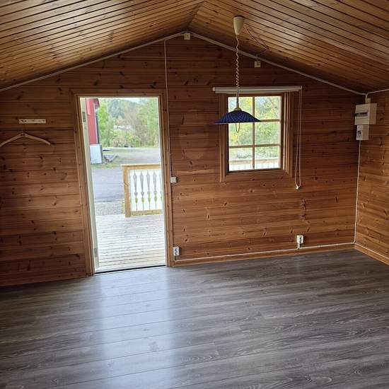 Nyrenoverad stuga med stort vardagsrum, separat funktionellt kök, lagom stort badrum med bland annat ny dusch. Serviceavgift för hyresgäst: 232