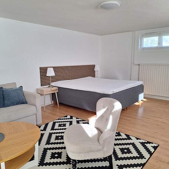 Mysigt ett rum och kök möblerad. Källarplan Ca. 40 kwm Ingår: vatten, Värme, el, wifi. 6500/ månad. Gemensamt tvättstuga. 10 minuter gångavstånd till centrum/ lasarett. Tillträde: enligt överenskommelse.