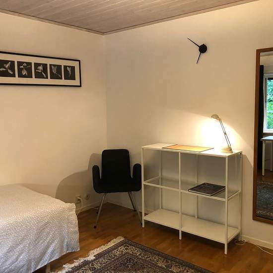 Large villa (student house) 350 m2, 3 floors whit garden. The bus stop is 2 minutes from the house. 2 living room and dining room. All rooms are furnished and bed linen is included (pillow, duvet and sheets). A big room 17 m2 with 6 wardrobes and own door out to the garden. Included in the rent: Electricity, water, heating, toilet paper, dish towel, and internet. Cleaning companies come every week and clean common areas. Welcome to the viewing, book an appointment. Stor villa (studenthus) 350m2, 3 plan och trädgård. Busshållsplatsen ligg...