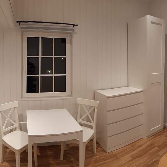 Vi hyr ut vårat Attefallshus, det är 25m2 plus ett sovloft. Det är ett komplett kök med spis, kombinerad ugn och micro, diskmaskin och kyl och frys. I badrummet finns det en dusch samt en kombinerad tvättmaskin och torktumlare. Det finns även en liten uteplats med utemöbler. Det som ingår i hyran är el, vatten, wifi och larm. Serviceavgift för hyresgäst: 445