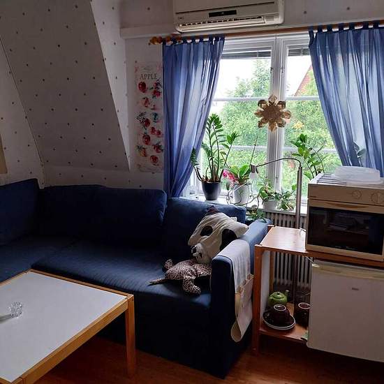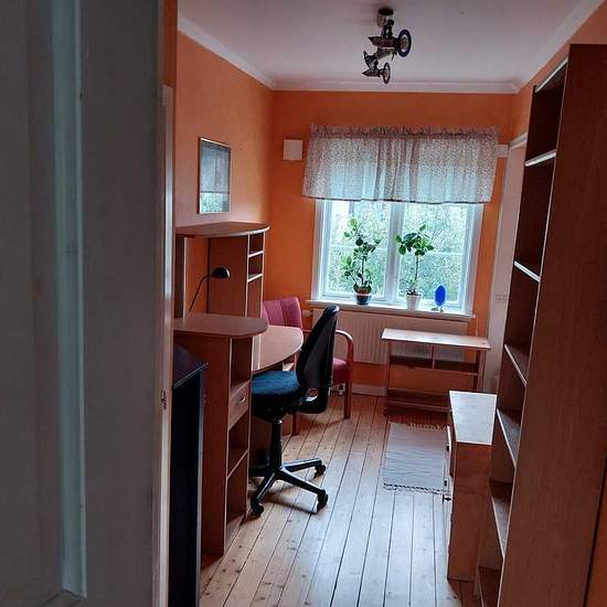 Eftersom vårt hus har fler rum än vi använder, så hyr vi ut två sovrum med tillhörande mindre allrum och toa/dusch på vår övervåning. Det ena rummet är nu ledigt. Det andra sovrummets hyresgäst är en ung grabb. Tillgång till familjens kök och tvättstuga. Wifi. Hörnsoffa, läsfåtölj, extra minikyl & extra micro i allrummet. Vi önskar ta ut en nyckeldeposition vid överlämnade av nyckeln till bostaden. Serviceavgift för hyresgäst: 153
