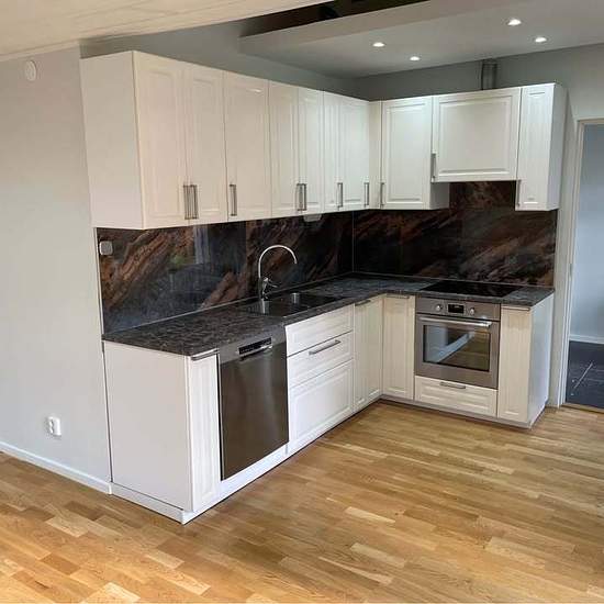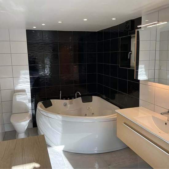 Jag har ett hus på 125 kvadratmeter som är byggat 2022, Det ligger i en naturlig miljö med skogar och sjöar i närheten. Huset har tre sovrum, vardagsrum, ett kök med en stor matsal, två badrum med golvvärme, en med dusch och den andra med bubbelbadkar för två personer. Båda badrum har en toalett och golvvärme. Det finns en tvättstuga med tvättmaskin och torktumlare. Huset har luft-vattenvärmare. Framför huset finns en stor altan och flera parkeringar för bilar. Det finns 1300 kvadratmeter gräsmark bredvid huset. Direkt ingång från huvudvägen...