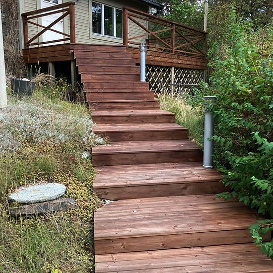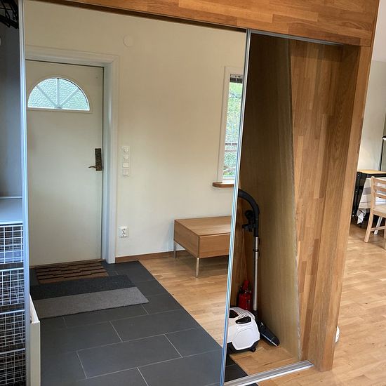 Bright, fully furnished guesthouse with private entrance, private patio and parking We are renting out our well-maintained, fully furnished guesthouse with its own entrance and no shared spaces. The guesthouse feels bright and spacious thanks to the high ceilings and large windows. It is suitable for one person or a couple looking for a comfortable home in a peaceful residential area. Sleeping area Queen-size bed (160 × 200 cm). The bed is placed in the loft above the bathroom, making efficient use of the space. Kitchen Fully equipped ki...