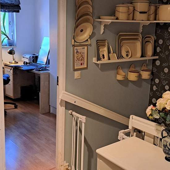 Här bor jag: Fem rum och kök på 104 kvadratmeter i Sundbyberg. Lägenheten klassas som ett hyresradhus och ingår i det kommunala bostadsföretaget Fastighets AB Förvaltarens lägenhetsbestånd. Huset/lägenheten är i två plan och har inga grannar ovanpå och under. Jag har en liten men mycket fin trädgård på cirka trettio kvadratmeter. Rabatter går runt hela tomten och det finns ett vackert och hemligt hörn med en stor bambu. Vid grinden välkomnas man av en syrenbuske och vackra stockrosor som klättrar på en träportal. Utsikt mot framsidan är den ...