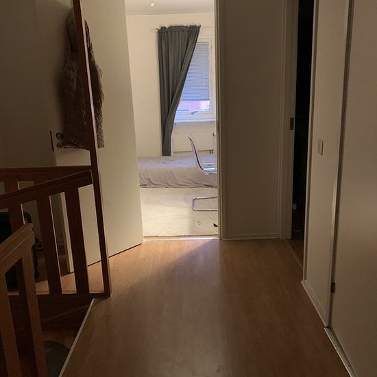 Jag vill dela hushåll med någon . Bor i radhus på 2 våningar och mindre trädgård .104 kvm totalt. Första bilderna är på rummet. Det har varit ett reserv rum som ska tömmas och målas. Så vidare ingen helt vill ha sminkbord och 90 säng. De följande foto är på hallen utanför rummet. Och toaletten på ovanvåningen. Samt klädkammare. Alla skåp och garderober går att flytta. Om man vill ha mer plats i sovrummet eller i walk in closet. På nedanvåning finns vardagsrum , kök och Tvättstuga med torkställe. Området har tvättstuga oxå med allt man vill...