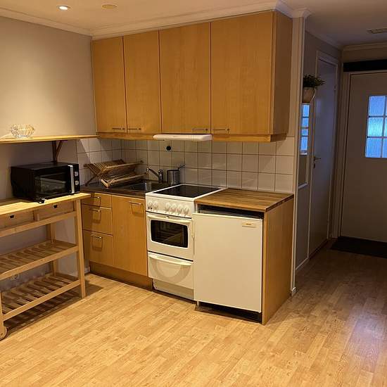 En liten lägenhet med egen ingång, del av villa, i ett lugnt villaområde. Hall med förvaring, badrum med dusch och toalett, köksdel med 3 elplattor och ugn, mikrovågsugn, liten kyl med frysfack. Vatten och hushållsel ingår. Rökning ej tillåten. Tillgång till: • tvättstuga med tvättmaskin och torktumlare • trådlöst internet ingår i månadsavgift • parkeringsplats för en personbil • uteplats i villaträdgård Busshållplats på 5 minuters gångavstånd för buss till Täby centrum och Mörby centrum. Gångavstånd till ICA butik, pizzeria och Thairest...