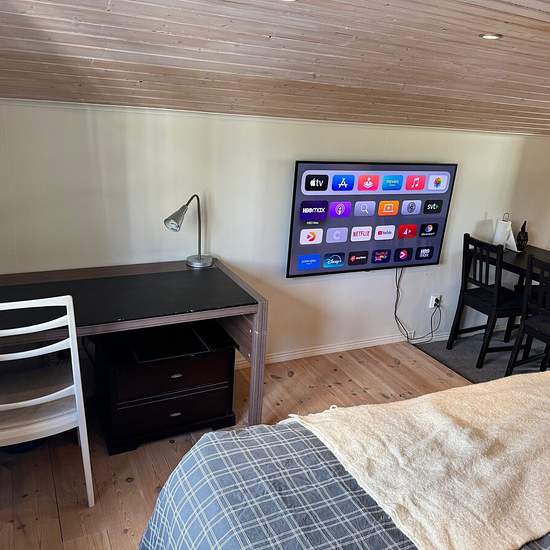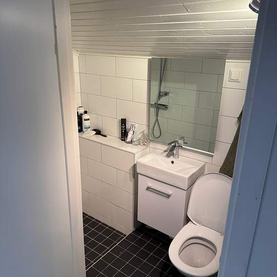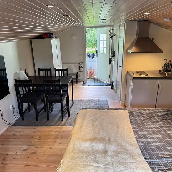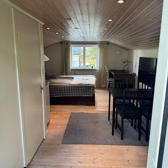 Nyrenoverad gäststuga ovanpå ett garage i mkt lugnt område i villakvarter. Fräscht badrum, liten kokvrå med enkla plattor samt kyl. Frys samt microugn finns. Närhet till Roslagsbanan, ej bilplats Serviceavgift för hyresgäst: 374