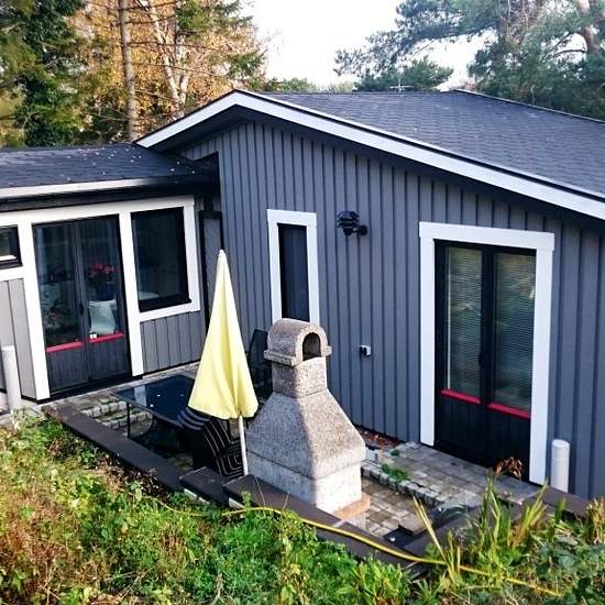 MINIVILLA VID HAVET En modern, välisolerad, fullt möblerad minivilla på 31m2 uthyres för max 2 personer (vuxna). Den ligger i Hjuvik på Hisingens västspets. Nära buss X6 och 34:an, småbåtshamn, bad och vacker skärgård samt färjor till Öckerö Kn. Huset har allrum, kök, hall, dusch, tvättstuga samt altaner på två sidor och ett kallförråd. Utgång från kök och allrum till soliga sydväst altanen med grill och trädgårdsmöbler. Köket har spishäll med varmluftsugn, mikro, kyl/frys, diskmaskin, matbord för 4 personer. TV samt radio, komplett köksu...