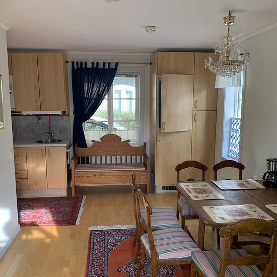Charmigt litet hus i bästa läge Trosa intill Trosaån med tillgång till trädgård, växthus och uteplats intill ån. Central värme vattenburen. 300 m till systembolag, apotek, affärer, restauranger, bank, buss till Stockholm mm. Lugnt läge. Värme, vatten, avlopp, el, TV, fönstertvätt, uteplatser, tillgång till tvättstuga, växthus, förråd ingår. Serviceavgift för hyresgäst: 445
