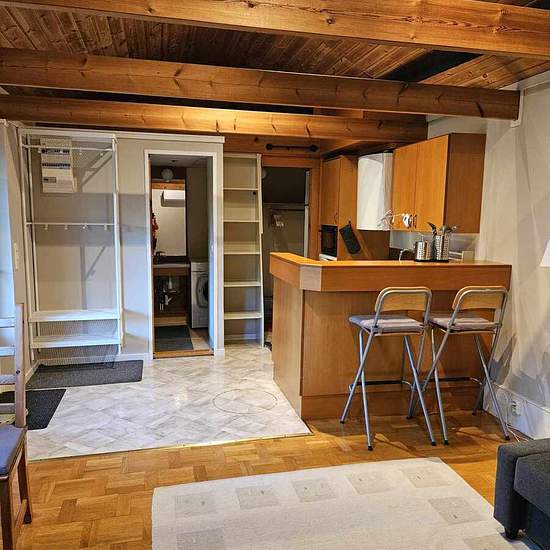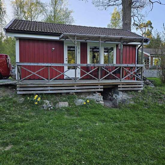 Ett litet enplanshus med altan för EN person med BIL som vill bo nära naturen och havet i ett lugnt område! Sovloft med säng 105cm bred eller möjlighet att sova i bäddsoffa 140cm bred. Huset är fullt möblerat, dusch, toalett, tvätt- och diskmaskin, ugn, kyl o frysfack med tillgång till extra frysutrymme i tilliggande byggnad. Egen bil rekommenderas men det finns buss 15 min promenad från huset. Vi söker en lugn och hänsynsfull hyresgäst Internet, kabel-TV, el, värme, vatten, sophämtning och parkering ingår. Serviceavgift för hyresgäst: 416