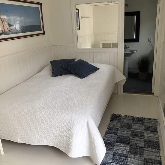Stugan är på ett rum och kök och badrum. Det finns 2 st kokplattor, ugn och kylskåp. Här finns även kaffebryggare, mikro samt allt man behöver för matlagning. Stugan är möblerat med 1 st dubbelsäng på 140cm och en TV. I köket finns ett litet matbord med plats för 2 personer. Egen entré in till bakgården/innergården (avskild från huvudbyggnaden)som delas med ytterligare en hyresgäst/boende. Stugan är i mycket bra skick och har ett badrum med dusch, toalett och tvättmaskin. Serviceavgift för hyresgäst: 247